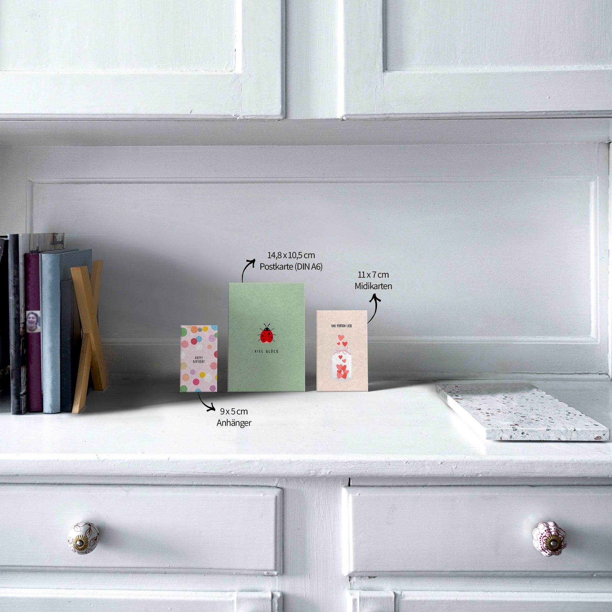Entdecke unsere nachhaltigen Midikarten mit liebevoll illustrierten Motiven im Format 11 cm x 7 cm. Die perfekte Zwischengröße zwischen einer Postkarte und einem Anhänger. Ideal für alle, die nicht viel schreiben möchten. Eignet sich super zum Anbringen an Flaschen, Geschenkkörben, Tee oder Kaffee.